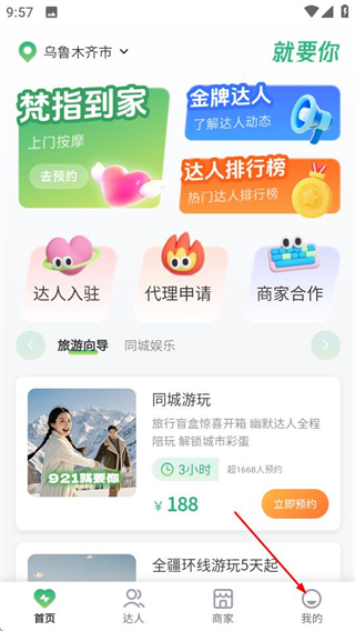 1、在921就要你首頁(yè),點(diǎn)擊底部的我的選項(xiàng),進(jìn)入登錄頁(yè)面。
