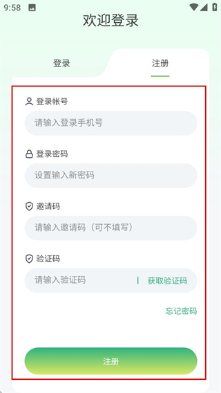 3、在注冊(cè)頁(yè)面,填寫(xiě)信息后,點(diǎn)擊注冊(cè)完成賬號(hào)注冊(cè)。
