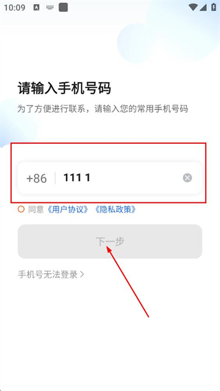 2、進(jìn)入請(qǐng)輸入手機(jī)號(hào)碼頁面,填寫手機(jī)號(hào)碼,立即進(jìn)入下一步的操作。