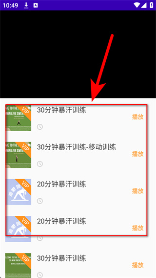 4、在播放列表中,選擇具體的訓練視頻,點擊右側的播放,即可開始跟隨視頻練習減肥操。
