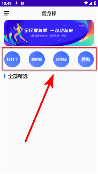 2、在主頁的分類標簽區(qū)域,選擇目標分類,進入對應分類的健身操列表頁面。