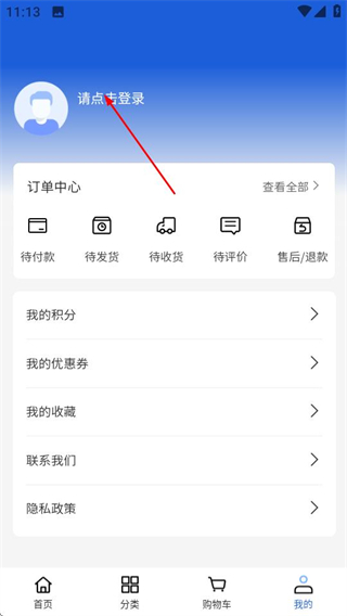 2、在個(gè)人中心頁面,點(diǎn)擊請(qǐng)點(diǎn)擊登錄選項(xiàng),進(jìn)入登錄頁面。