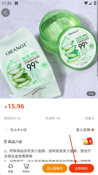 3、在商品詳情頁,點(diǎn)擊立即購買按鈕,進(jìn)入商品規(guī)格選擇彈窗。