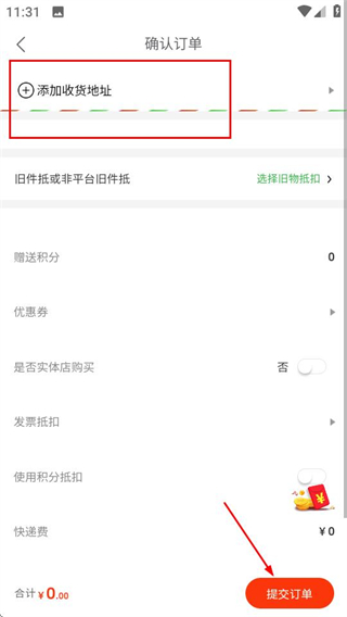 5、在確認(rèn)訂單頁面,添加收貨地址后點(diǎn)擊提交訂單完成購買流程。