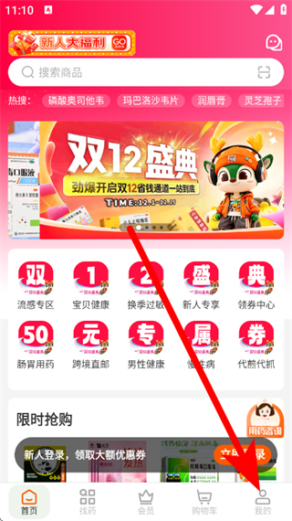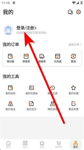 1、打開好萬家大藥房,點(diǎn)擊底部的我的,進(jìn)入我的頁面。
