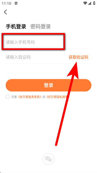 3、在登錄頁面,輸入手機(jī)號碼,點(diǎn)擊獲取驗(yàn)證碼。