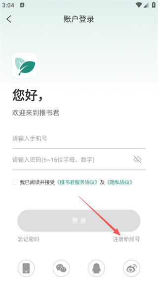3、在賬戶登錄頁面,點(diǎn)擊右下角的注冊(cè)新賬號(hào)選項(xiàng),進(jìn)入注冊(cè)新賬號(hào)的頁面。