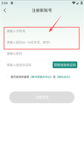 4、在注冊(cè)新賬號(hào)頁面,填寫請(qǐng)輸入手機(jī)號(hào)、請(qǐng)輸入密碼,進(jìn)入下一步的操作。