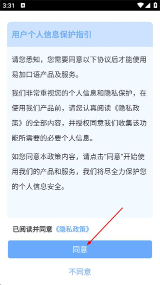 1、在用戶個人信息保護(hù)指引頁面,點(diǎn)擊底部的同意,進(jìn)入登錄界面。