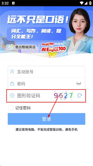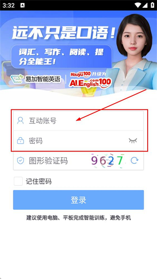 2、進(jìn)入易加口語的登錄頁面后,依次填寫互動賬號與密碼這兩項(xiàng)信息。