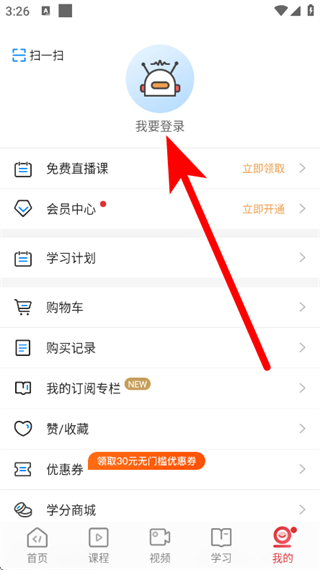 1、打開(kāi)51cto首頁(yè),點(diǎn)擊底部的我的,進(jìn)入個(gè)人頁(yè)面。