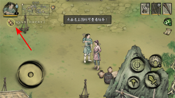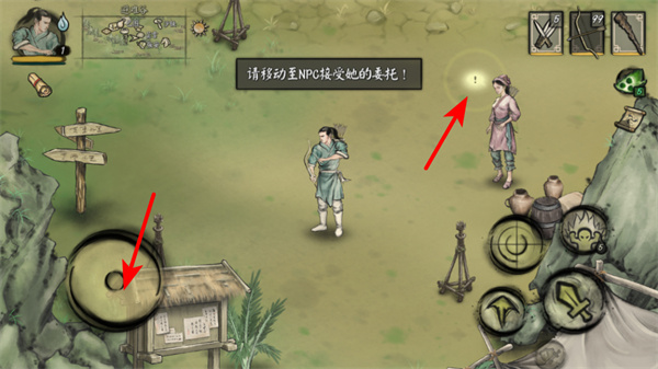 2、進(jìn)入場景后,操控左側(cè)的移動(dòng)按鈕控制角色移動(dòng),這是接近NPC的基礎(chǔ)操作,移動(dòng)過程中需留意界面的任務(wù)提示。