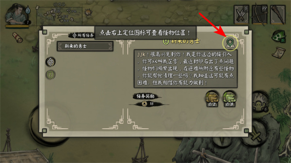 4、在任務(wù)界面中,點(diǎn)擊任務(wù)相關(guān)的定位圖標(biāo),這是獲取任務(wù)地點(diǎn)指引的重要操作,借助該指引可更精準(zhǔn)地前往任務(wù)。