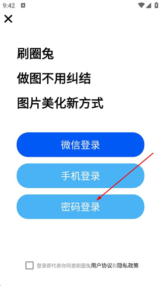 3、在登錄選擇頁(yè)面,點(diǎn)擊密碼登錄,切換至手機(jī)登錄界面。