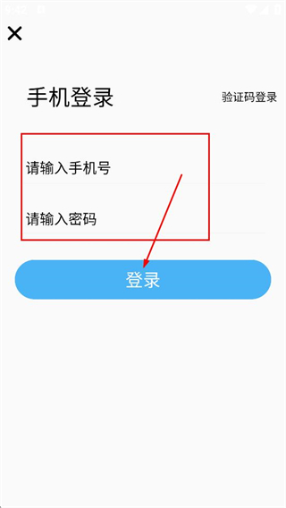 4、在登錄界面,填寫手機(jī)號(hào)和密碼后,點(diǎn)擊登錄,完成賬號(hào)登錄。