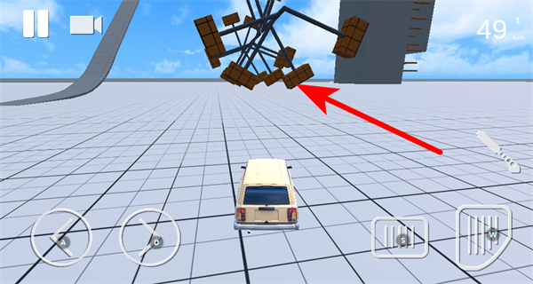 3、操控車輛與方塊結(jié)構(gòu)障礙發(fā)生碰撞/互動(dòng),感受道具擠壓車輛后的狀態(tài)變化,還可以點(diǎn)擊左上角按鈕切換當(dāng)前的駕駛視角。