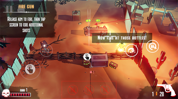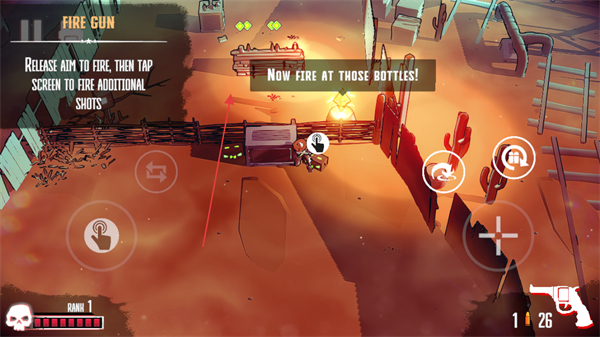 4、持續(xù)按操作開火射擊瓶子,完成當(dāng)前射擊任務(wù),推進關(guān)卡進度。