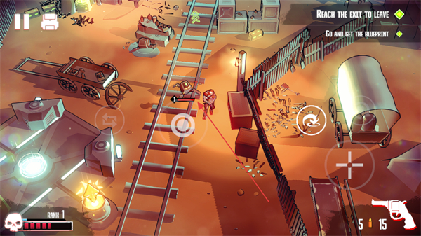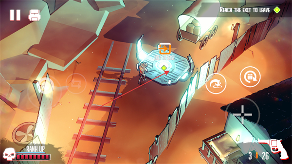 1、按提示前往目標點,移動角色同時用武器攻擊敵人,推進至REACHTHESKIPTOLEAVE區(qū)域。