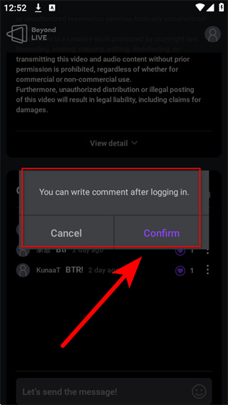 3、彈出需登錄后才能評(píng)論的提示框,點(diǎn)擊Confirm,進(jìn)入登錄頁(yè)面。