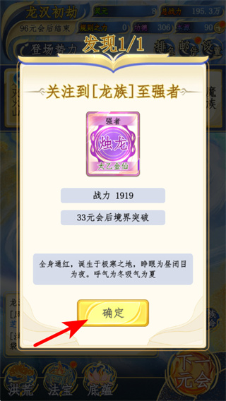 1、當(dāng)強(qiáng)者解鎖的提示界面彈出時(shí),點(diǎn)擊確定按鈕,這是確認(rèn)勢(shì)力強(qiáng)者加入的關(guān)鍵操作,確認(rèn)后該強(qiáng)者會(huì)提升勢(shì)力的總戰(zhàn)力,增強(qiáng)整體實(shí)力。