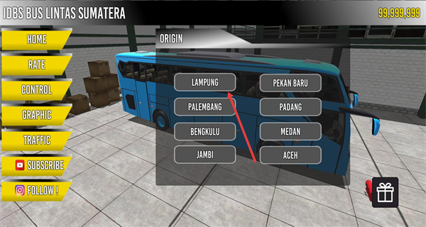 2、在路線選擇界面,選擇出發(fā)城市如“LAMPUNG”,確定本次巴士行程的起點。