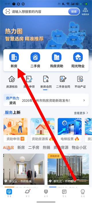 1、打開常州住房,點擊新房,進入新房相關頁面。