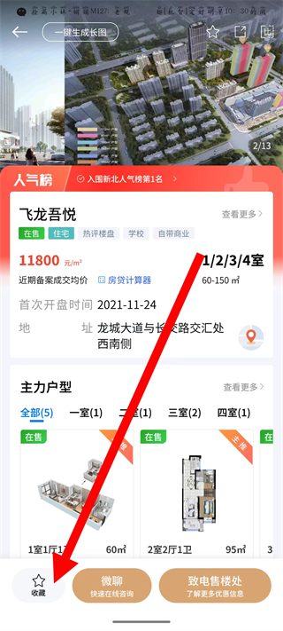 4、在房源詳情頁,點擊左下角收藏,完成該房源的收藏。