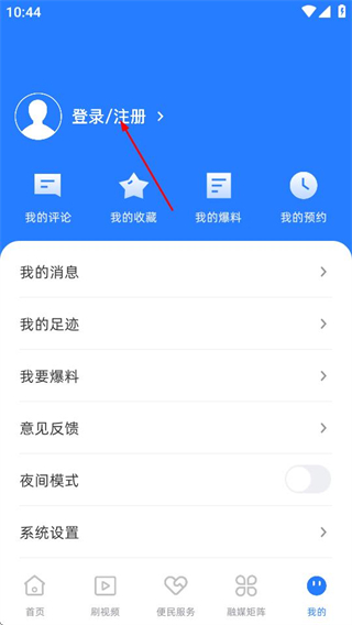 2、在個人中心頁面,點擊登錄注冊選項,進入登錄頁面。