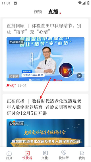 2、在視頻頁面,點擊直播選項,進入直播列表頁面。