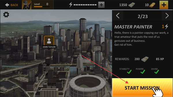 1、查看任務(wù)MASTERPAINTER,點擊STARTMISSION開始任務(wù),進入狙擊場景。