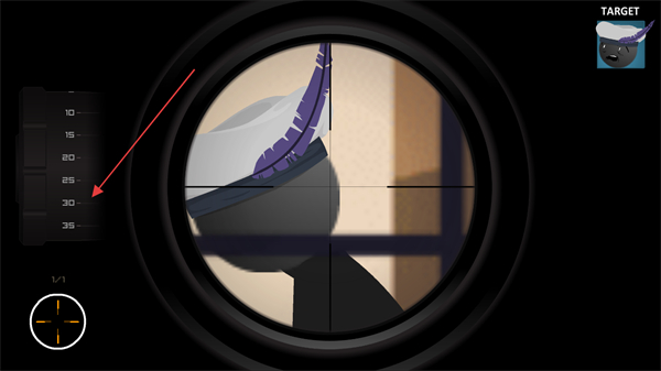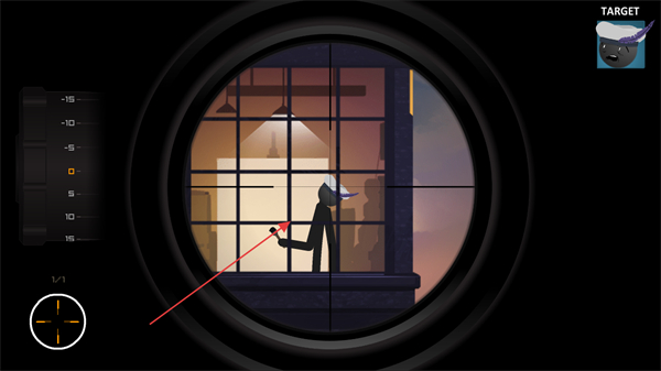 2、通過狙擊鏡瞄準目標(biāo)火柴人,調(diào)整視角鎖定目標(biāo),準備發(fā)起攻擊。