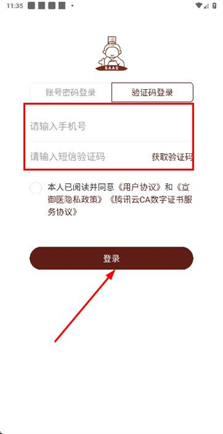 3、在驗證碼登錄頁面填寫手機號和驗證碼,勾選協(xié)議后,點擊登錄完成賬號登錄操作。