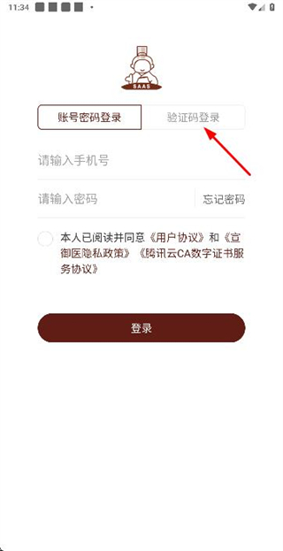 2、在登錄頁面點擊驗證碼登錄,進入驗證碼登錄頁面。