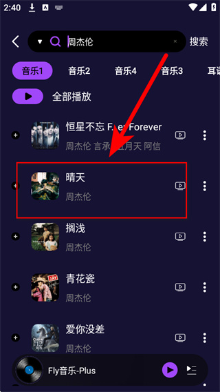 3、在搜索結(jié)果列表中找到目標歌曲,點擊進入該歌曲的播放頁面。
