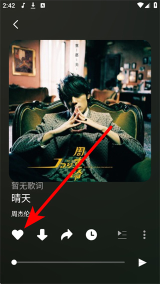 4、在播放頁面中點擊心形的喜歡,點即可將這首歌曲添加到喜歡列表中。