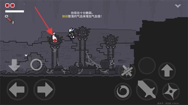 2、進(jìn)入游戲后看到提示你現(xiàn)在十分虛弱??拷⒙涞臍庋獊?lái)增加氣血值,操控角色移動(dòng)獲取氣血恢復(fù)狀態(tài)。