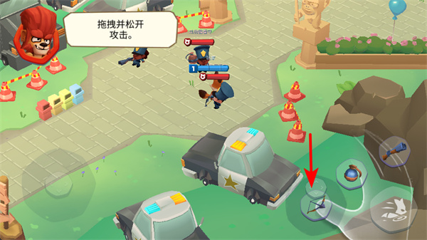 3、拖拽攻擊按鈕并松開(kāi),這是發(fā)起攻擊的核心操作,操作后角色會(huì)對(duì)目標(biāo)造成傷害,擊退敵方單位,保障自身在場(chǎng)景中的安全。