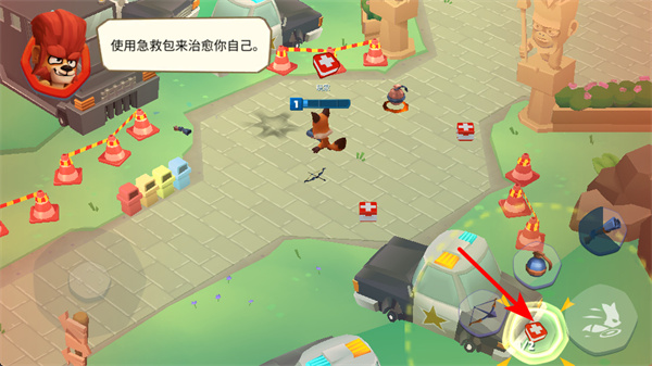 2、點(diǎn)擊急救包按鈕使用道具,這是恢復(fù)狀態(tài)的基礎(chǔ)操作,使用后可回復(fù)角色的生命值,提升在戰(zhàn)斗中的持續(xù)生存能力,保障進(jìn)行。
