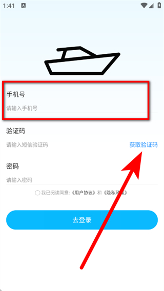 3、在注冊頁面,輸入手機號,點擊獲取驗證碼。