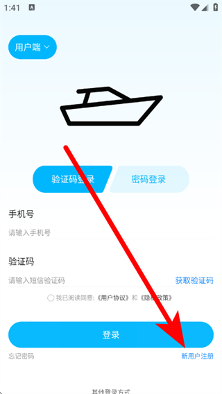 2、在登錄界面,點擊新用戶注冊,進入注冊頁面。