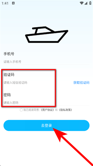 4、輸入短信驗證碼,設(shè)置密碼,勾選協(xié)議后,點擊去登錄,完成注冊。
