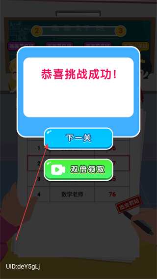 4、挑戰(zhàn)成功后彈出提示框,點擊下一關進入后續(xù)關卡。