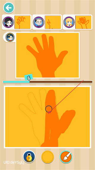 1、根據上方手掌圖案,用下方工具沿著虛線繪制手掌,完成畫作。