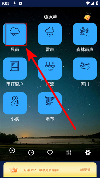 2、在主界面的音效列表里,選擇想要的睡眠音效,點(diǎn)擊對(duì)應(yīng)的音效圖標(biāo)。