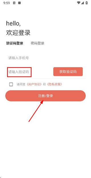 3、在驗(yàn)證碼輸入框中填寫收到的驗(yàn)證碼,點(diǎn)擊登錄完成賬號的登錄操作。