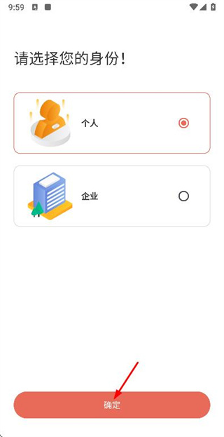 1、在身份選擇界面選擇個(gè)人點(diǎn)擊確定,進(jìn)入登錄頁面。