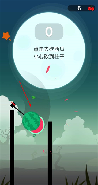 4、在特定關(guān)卡中,點(diǎn)擊操作砍伐西瓜類物品,需避開柱子類障礙,完成對(duì)應(yīng)收集任務(wù)以推進(jìn)關(guān)卡。