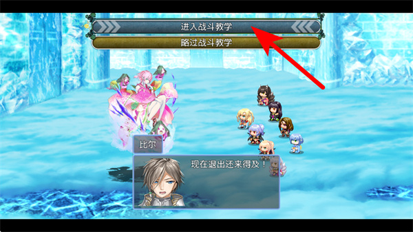 3、選擇進入戰(zhàn)斗教學(xué)選項,這是熟悉戰(zhàn)斗機制的核心操作,進入后可學(xué)習(xí)戰(zhàn)斗的基礎(chǔ)規(guī)則與操作方式,提升對戰(zhàn)中的策略能力。