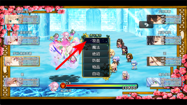 4、在戰(zhàn)斗界面選擇攻擊指令,這是開展對戰(zhàn)的重要操作,選擇后可指揮角色發(fā)起攻擊,消耗敵方生命值,推進戰(zhàn)斗的勝利進程。