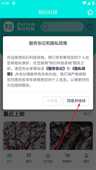 1、在服務(wù)協(xié)議和隱私政策彈窗中,點(diǎn)擊同意,進(jìn)入應(yīng)用首頁(yè)。